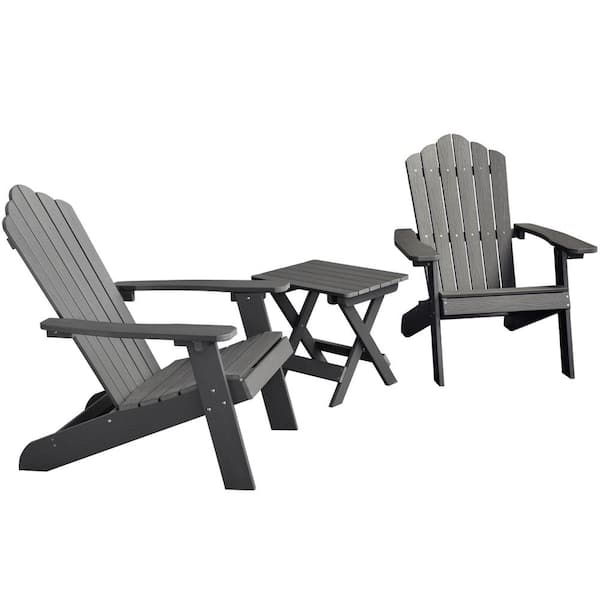 Aspen Charcoal Gray 3-Piece Recycled Plastic Outdoor Patio Conversation Adirondack Chair Set with a Side Table
