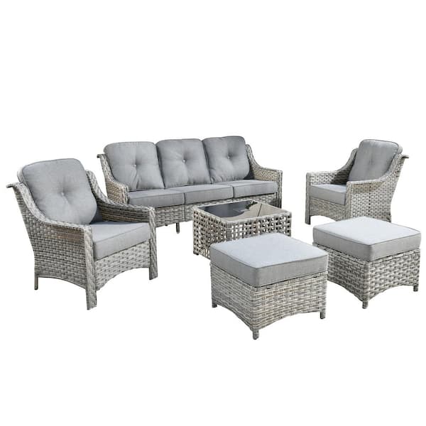 Denver 6-Piece Wicker Outdoor Furniture Patio Conversation Sofa Set with a Solar LED Table and Dark Grey Cushions