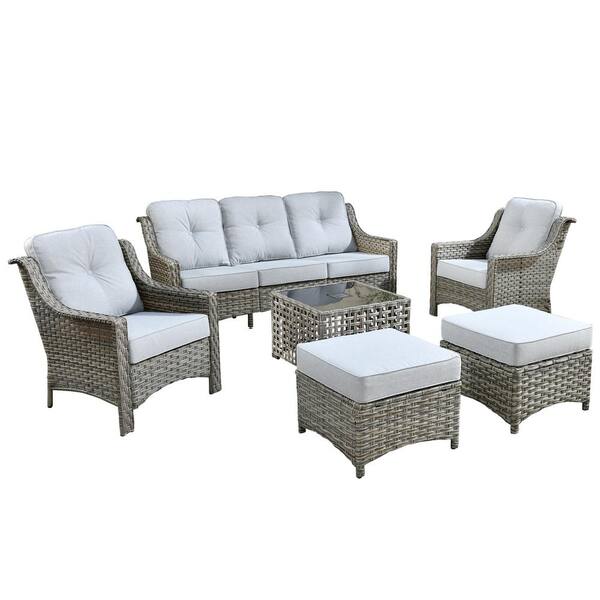 Denver 6-Piece Wicker Outdoor Furniture Patio Conversation Sofa Set with a Solar LED Table and Light Cushions