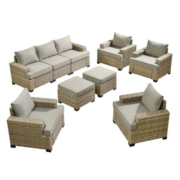 Kelleys 9-Piece Wicker Modern Outdoor Patio Conversation Sofa Seating Set with Dark Grey Cushions