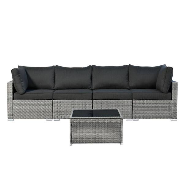 Messi Gray 5-Piece Wicker Outdoor Patio Conversation Sectional Sofa Set with Black Cushions