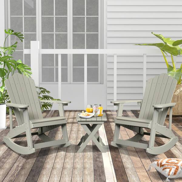 Rocky Light Gray 3-Piece Recycled Plastic Outdoor Patio Conversation Adirondack Rocking Chair Set with a Side Table