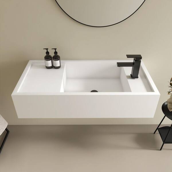 39 x 19 in. Solid Surface Wall Mount Bathroom Vessel Sink with Faucet Hole in Right