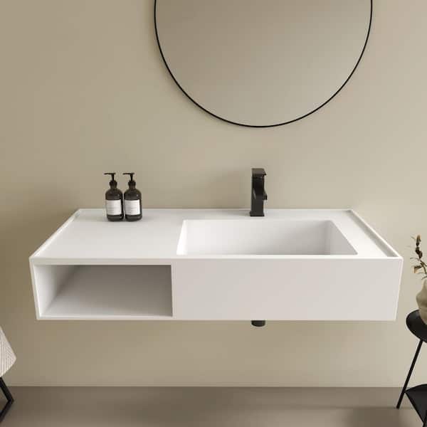 42 x 19 in. Solid Surface Wall Mount Bathroom Vessel Sink with Single Faucet Hole and Storage Compartment
