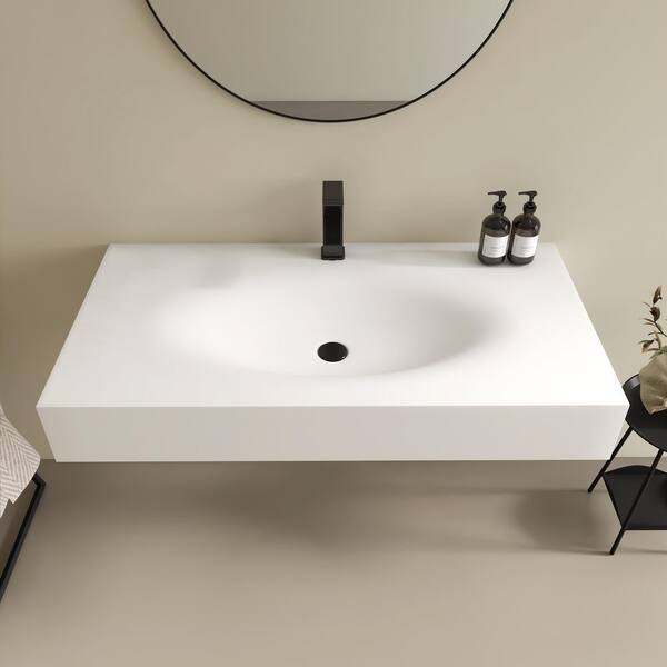 42 x 22 in. Solid Surface Wall Mount Bathroom Vessel Sink with Faucet Hole in Matte Whiote