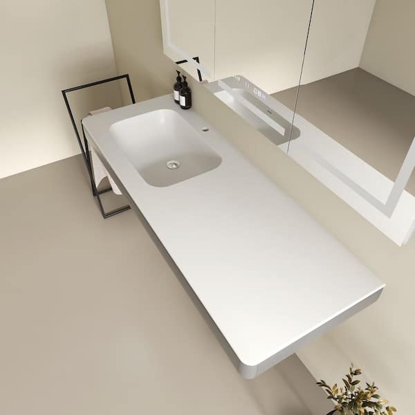 Barox 60 in. x 22 in. Acrylic Wall-Mounted Bathroom Sink with Bracket, Single Faucet Hole in White