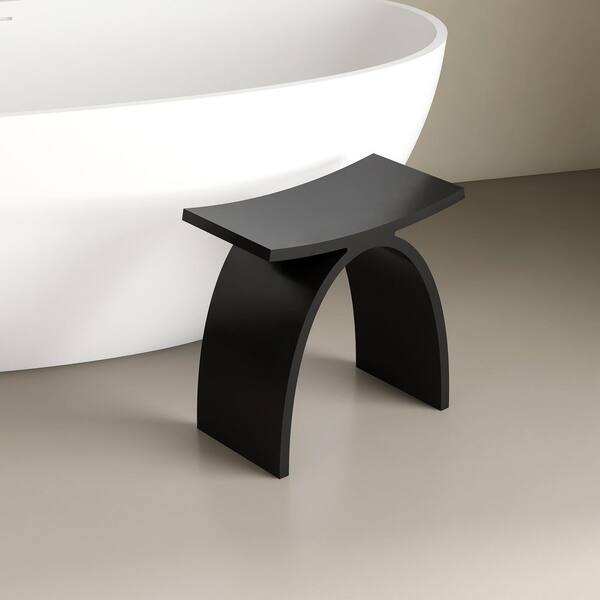 Sotix 16 in. x 9 in. Freestanding Solid Surface Shower Stool Vanity Seat in Black