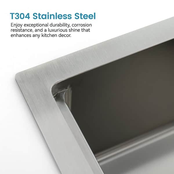 Steelio 33 in. x 22 in. Drop-In Single Bowl Stainless Steel Workstation Kitchen Sink in Brushed with Accessories
