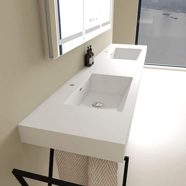 Vetra 83 x 20 in. Composite Rectangle Wall Mount or Countertop Bathroom Double Vessel Sink with Faucet Holes in White