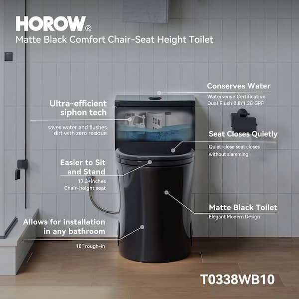 1-Piece 0.8/1.28 GPF Dual Flush Elongated Toilet in Matte Black with Soft-Close Seat Included