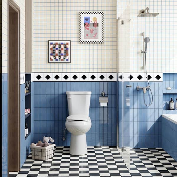 19 in. ADA Tall 2-piece 1.28 GPF Single Flush Round Toilet in White Map Flush 1000g, Soft-Close Seat Included