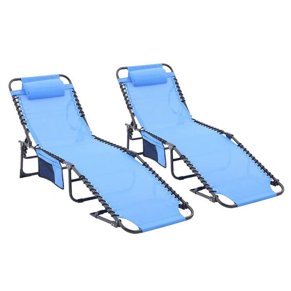 2-Pcs Foldable Waterproof Lounge Chair - Outdoor Portable Adjustable Chaise Lounge Chair with Pillow and Side Pocket