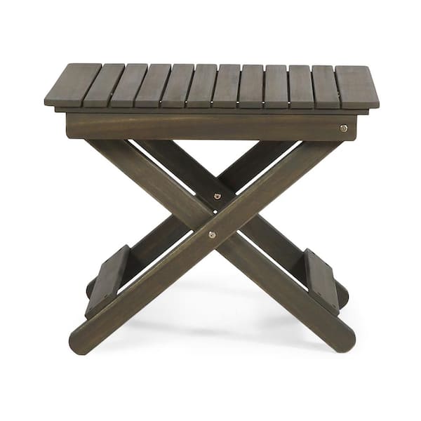 23 in. W x 18 in. H Foldable Outdoor Folding Acacia Wooden Gray Side Table