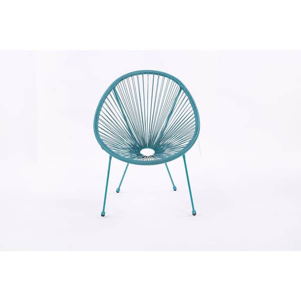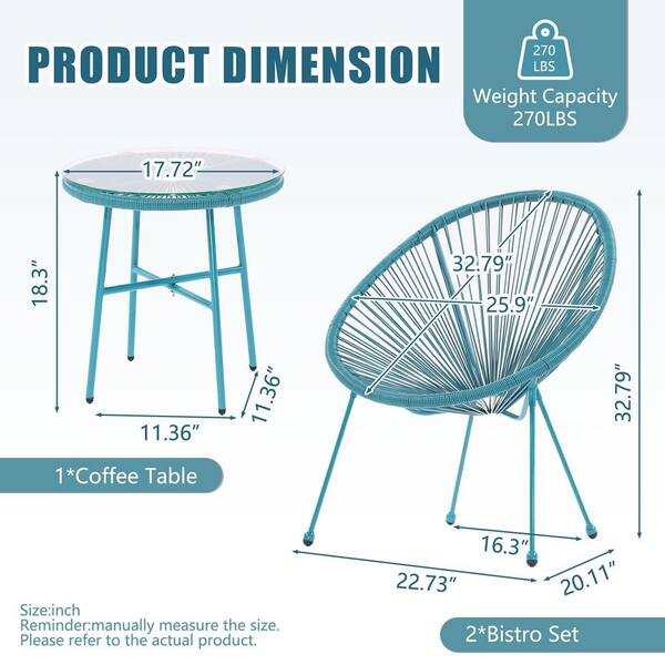 3 Pieces Blue Classic Patio Bistro Conversation Set with Side Table PE Rattan Chair Set Outdoor Furniture