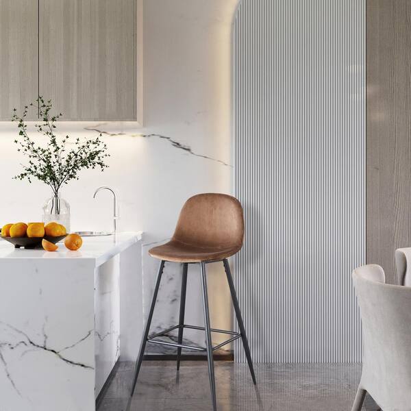 Outdoor 2-Pack 30 in. Brown Velvet Metal Outdoor Bar Stools with Back and Footrests for Kitchen Bar