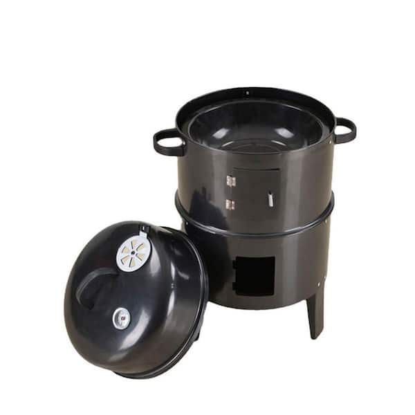 Portable Charcoal Wood Fired Double-Layer Grill in Black with Braising and Smoking Stove