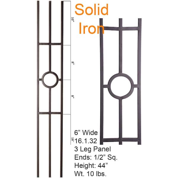 Aalto Modern 44 in. x 0.5 in. Satin Black 3 Leg Panel Solid Wrought Iron Baluster