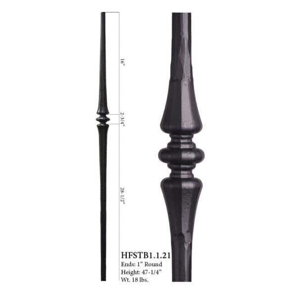 Satin Black 1.1.21 Single Tapered Knuckle Round 1 in. x 47.3 in. Iron Newel Support Post for Stair Remodeling
