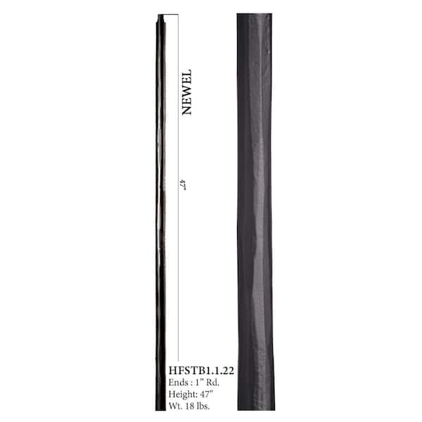 Satin Black 1.1.22 Plain Round 1 in. x 47 in. Iron Newel Support Post for Stair Remodeling