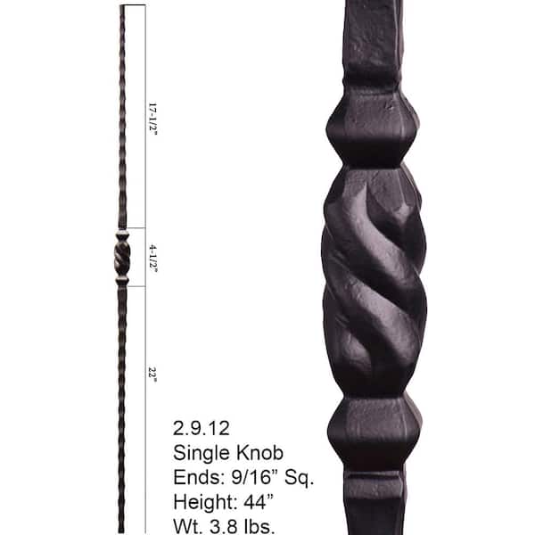 Tuscan Square Hammered 44 in. x 0.5625 in. Satin Black Single Twisted Knuckle Solid Wrought Iron Baluster