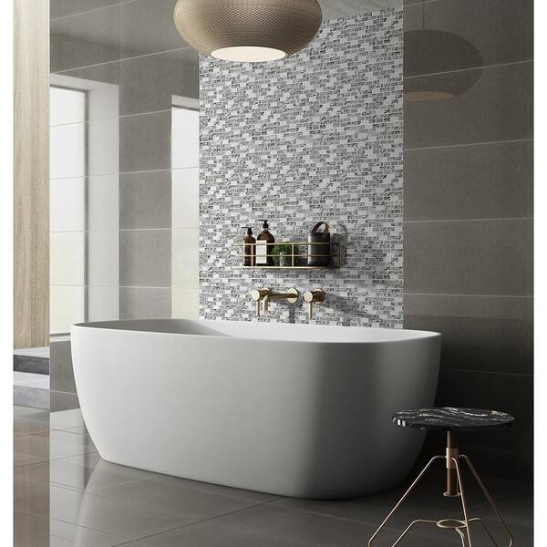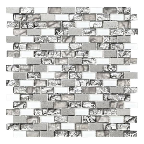 Kensington Gray Backsplash 3.93 in. x 4.33 in. Brick Joint Matte Marble Glass Mosaic Wall Tile Sample (0.11 sq. ft./Ea)