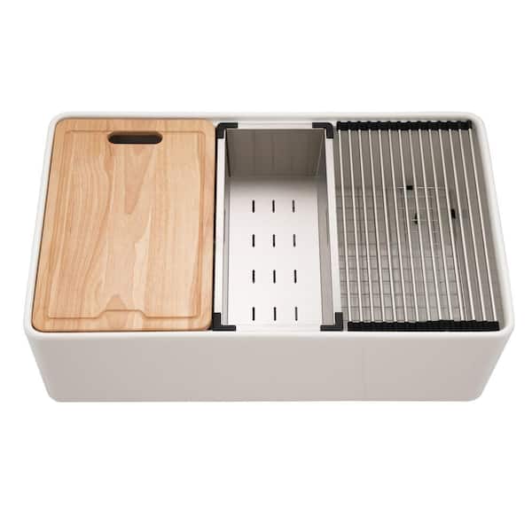 Aspire 33 in Matte Gray Fireclay Farmhouse Apron Front Single Bowl Workstation Sink with Accessories PTW-3320S GR