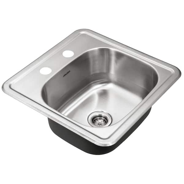 Hospitality 15 in. Stainless Steel Drop-in Topmount 2-Hole Single Bowl Bar Sink with Strainer- 1515-6BS-C