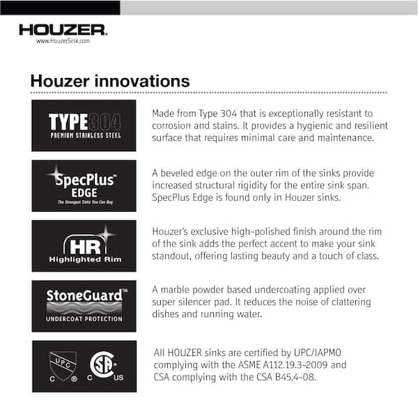 Houzer Elite 31 in. Stainless Steel Undermount 50/50 Double Bowl Kitchen Sink with Strainer - ED-3108-1