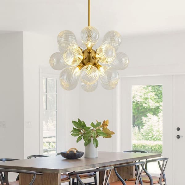 Alma 18-Light 23.6 in.W Aged Brass Chandelier Mid-Century Sputnik Dining Room Chandelier with Twisted Ribbed Glass