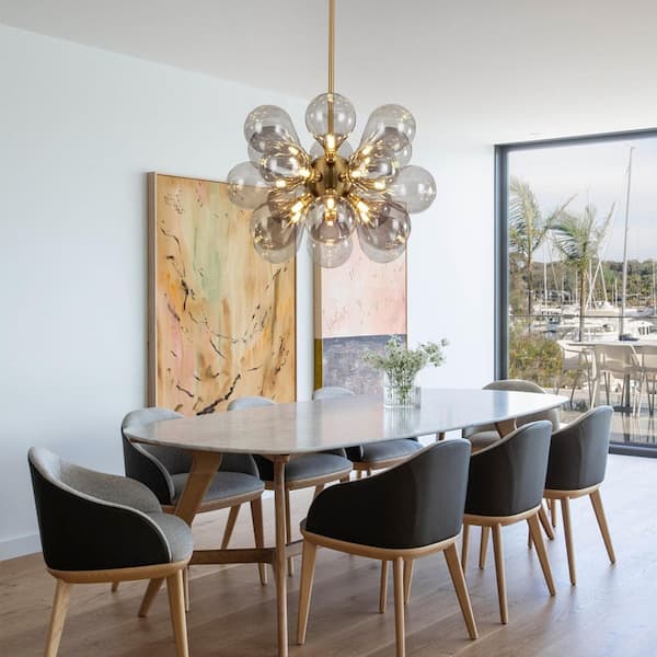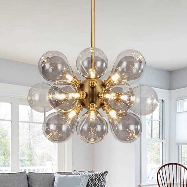 Alma 18-Light Brass Finish Sputnik Chandelier with Clear-Gray Glass Ball for Hallway