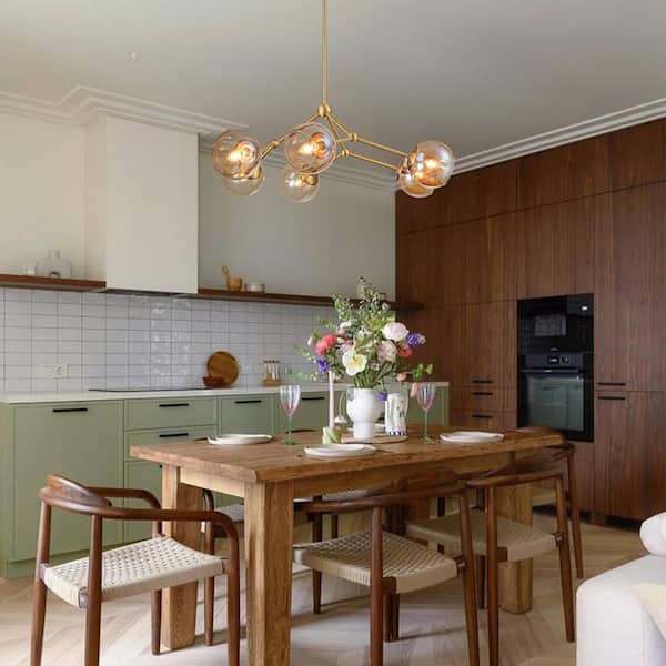 Antonio 6-Light 33.1 in. W Brushed Gold Chandelier Chandelier Sputnik Chandelier with Amber Glass for Living Room