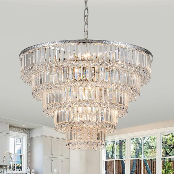 Ccrystal 24.8 in.Dia Contemporary 17-Light Chrome 5-Tiered Crystal Ring Chandelier or for Hotel and Living Room