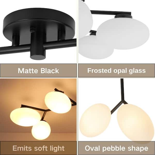 Ceder 6-Light 42.5 in. W Matte Black Semi-Flush Mount Branch Sputnik Ceiling Light with Oval Opal Glass for Kitchen