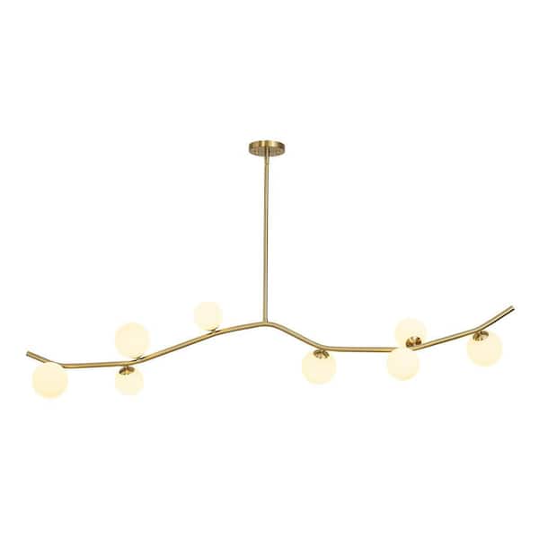 Ceder 8-Light 61 in. W Brass Chandelier Linear Modern Chandelier with Opal Glass for Kitchen Island