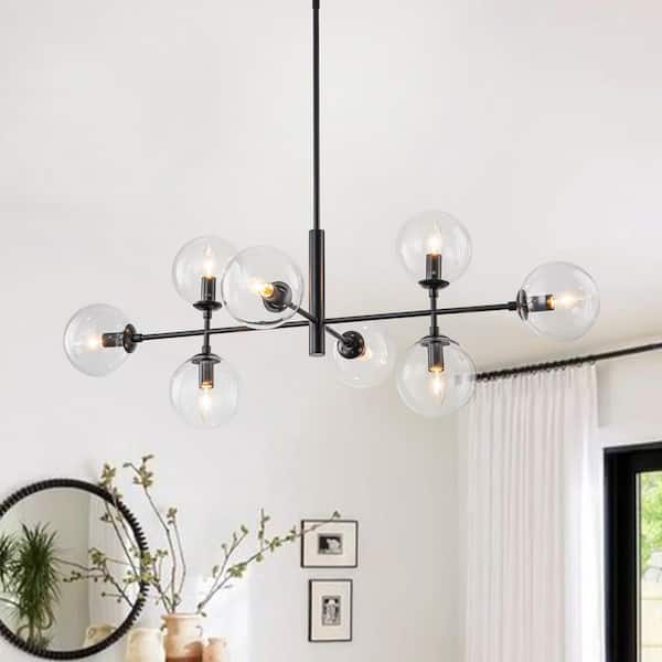 Dimma 8-Light 43.3 in. W Matte Black Chandelier Linear Chandelier with Clear Glass for Kitchen Island