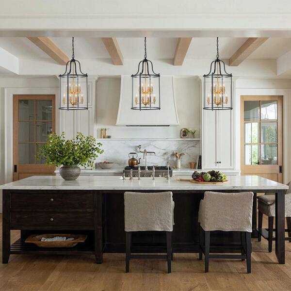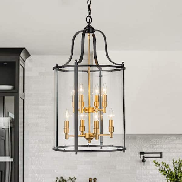 Diseno 8-Light 17.1 in. W Matte Black Chandelier with Large Bucket Clear Glass Candlestick Chandelier for Kitchen Island