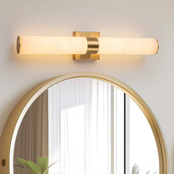 Divine 23.6 in. W 1-Light Gold Bathroom LED Vanity Light Cylinder Solid Stone Wall Sconce with Marbleized Glass Shade