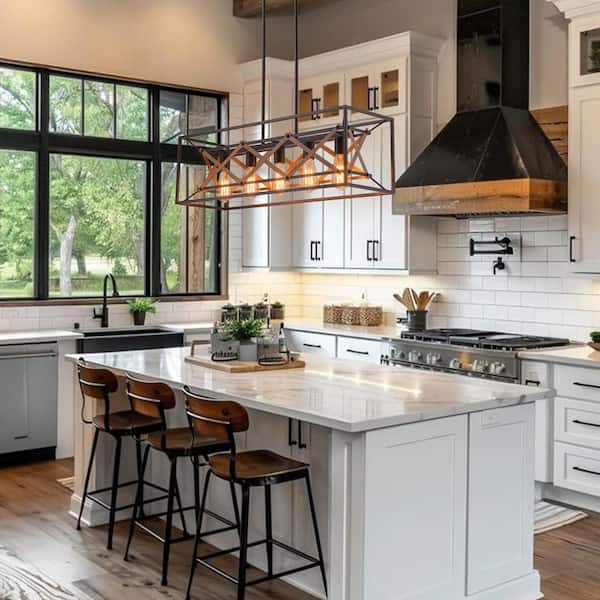 • Modern Farmhouse Linear Island rectangular chandelier light