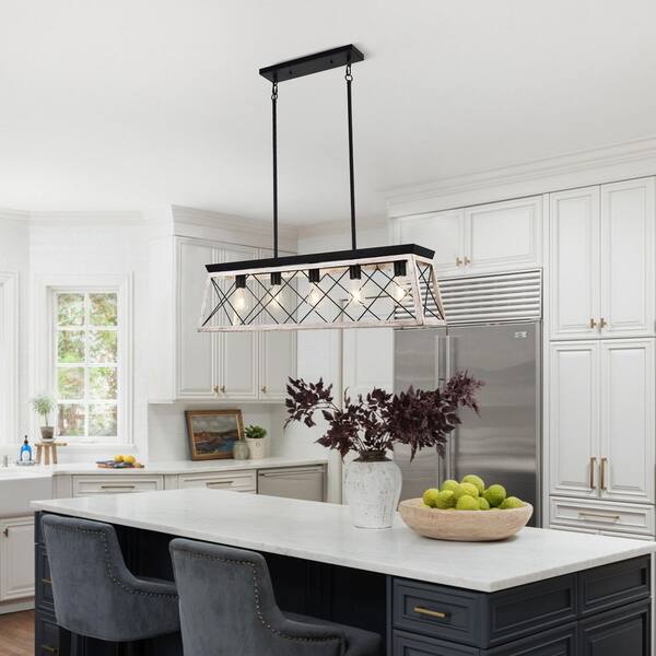 Libertab 5-Light 37.8 in. W Matte Black Chandelier Trapezoidal Rectangular Cage for Kitchen Island Lighting