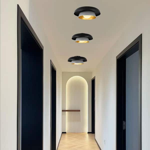 Lumin 1-Light 18.1 in.W Black Flush Mount Industrial Dome Round Ceiling Light with Opal Glass for Closet Foyer Hallway