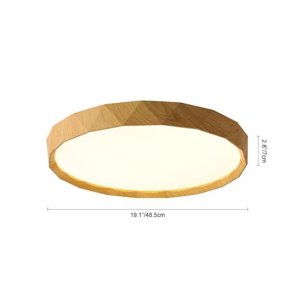 Lumin 1-Light 19 in.W Yellow Wood Integrated LED Selectable CCT Fluch Mount Minimalist Vintage Round Drum Ceiling Light