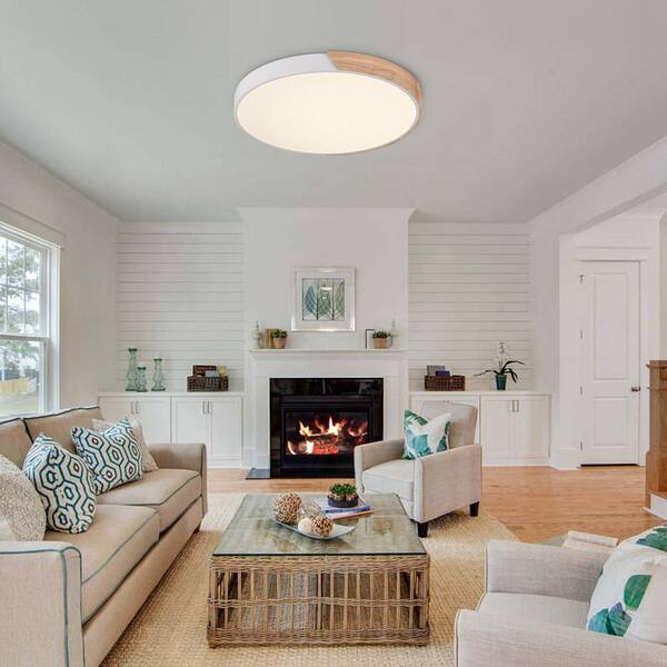 Lumin 19.7 in. Wood and White Finish Round LED Flush Mount Low Profile Dimmable Fixture for Bedroom Living Room