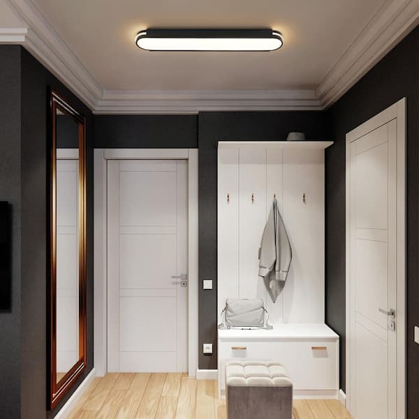 Lumin 31.5 in.W Matte Black Integrated LED Flush Mount Long Rectangular Ceiling Light Main Lighting for KitchenBathroom