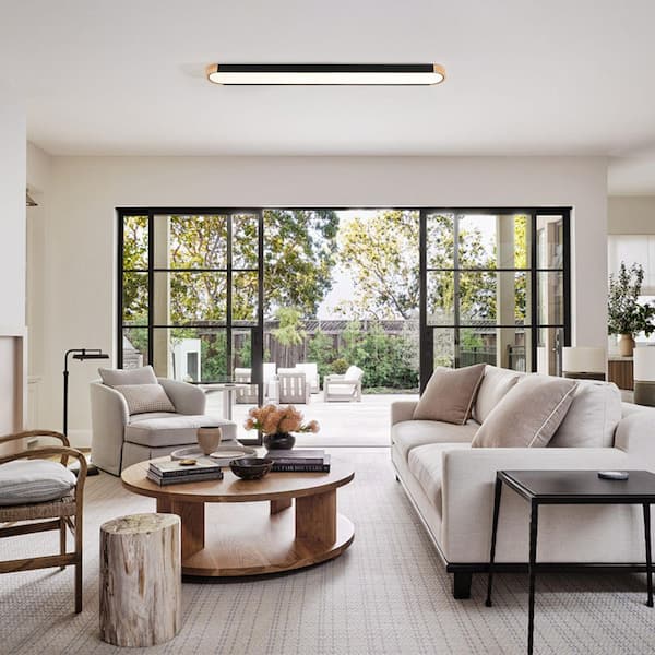 Lumin 48 in.W Matte Black Integrated LED Flush Mount Long Rectangular Ceiling Light Main Lighting for KitchenBathroom