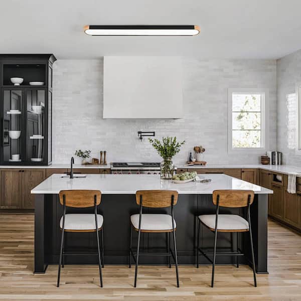 Lumin 48 in.W Matte Black Integrated LED Flush Mount Long Rectangular Ceiling Light Main Lighting for KitchenBathroom
