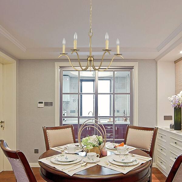 Lyra 5-Light 26 in.W Brushed Gold Mid-Century Candle Style Chandelier Luxury Vintage Living Room Pendant Light