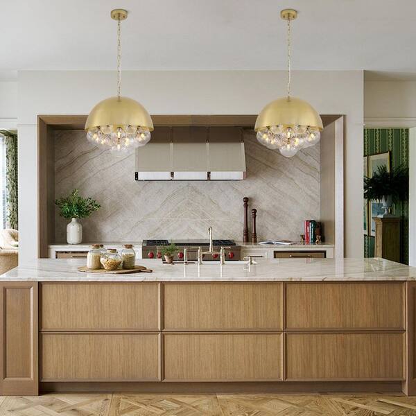 Neuvy 10-Light 17.7 in. W Brass Chandelier Dome Pendant Light with Ribbed Twist Glass and Clear Glass for Living Room