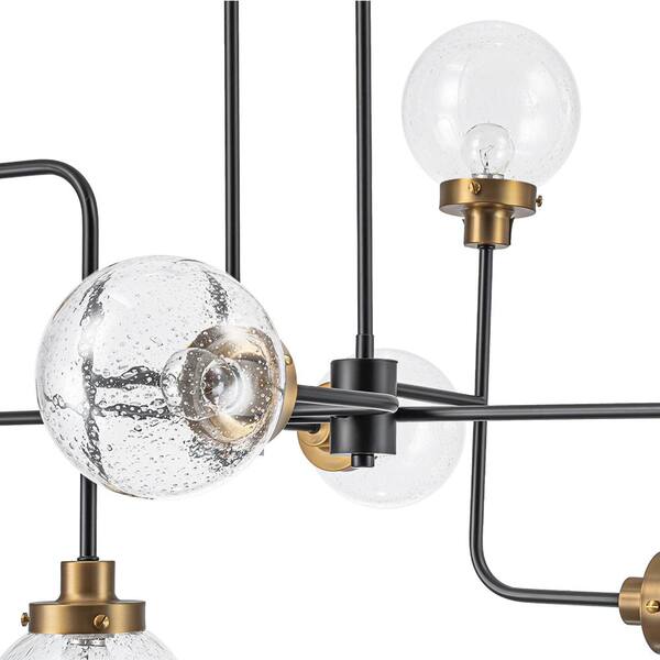 Noche 8-Light 47.2 in.W Black and Gold Modern Sputnik Chandelier with Seeded Glass Globe for Living Room or Large Room