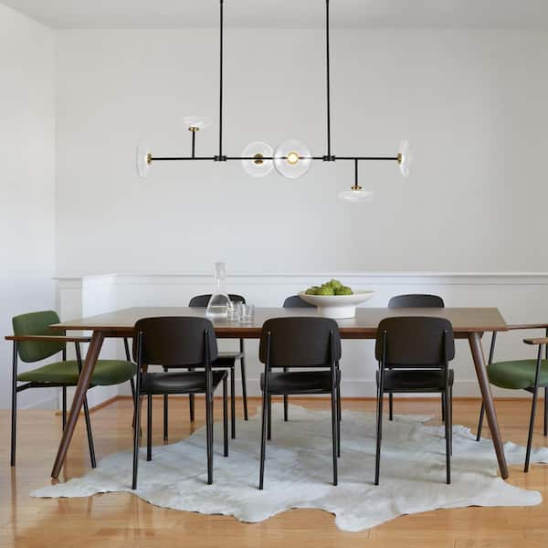 Toluo 6-Light 54.5 in. W Matte Black Integrated LED Chandelier with Saucer Glass Shade Modern Linear Kitchenm Light
