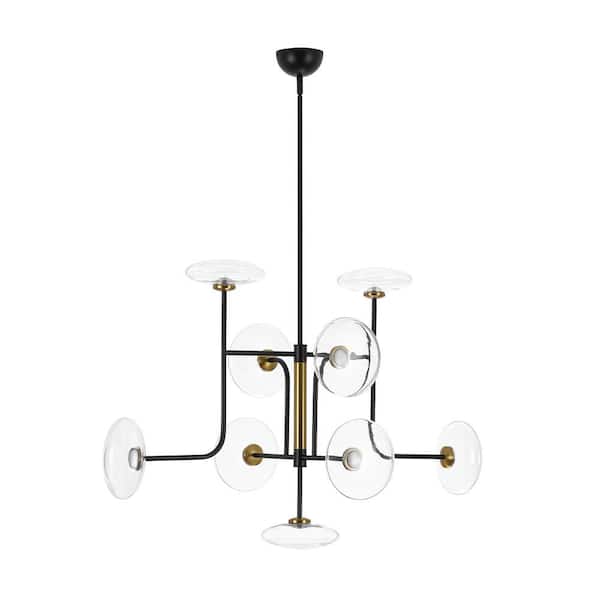 Toluo 9-Light 43.3 in. W Matte Black Integrated LED Chandelier with Saucer Glass Shade Modern Sputnik Living Room Light